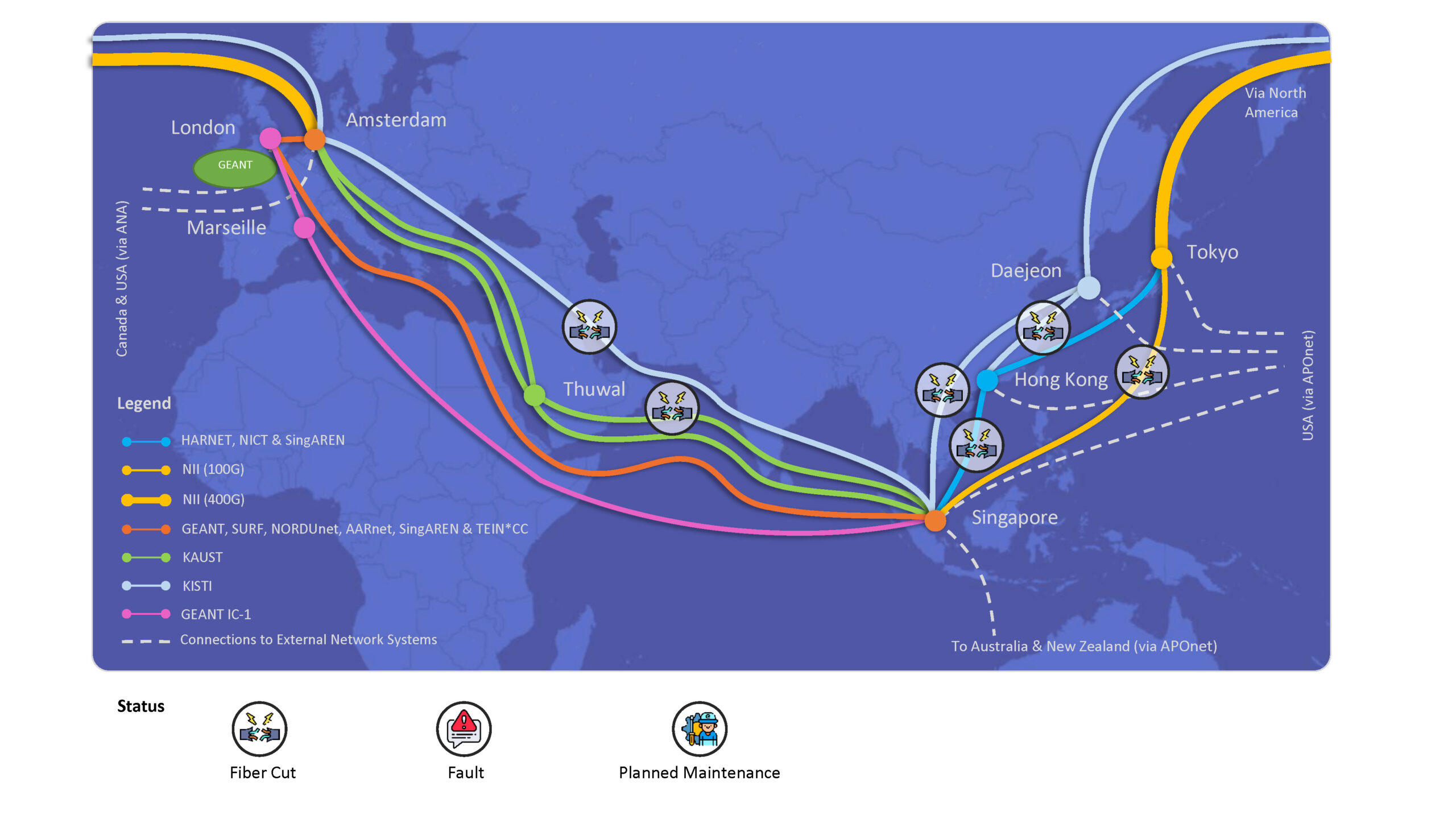 | HARNET, NICT & SingAREN | TGN-IA | Hongkong | Singapore | Fibre Cut | 26-Jul-2025 | N.A. |