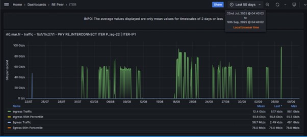 The objective was to validate throughput close to the 100 Gbps link capacity, test sustained performance, evaluate multi-path capabilities, and identify bottlenecks—critical preparation ahead of ITER’s operational phase in 2034, when petabytes of experimental data will need to be transferred globally in near real-time.